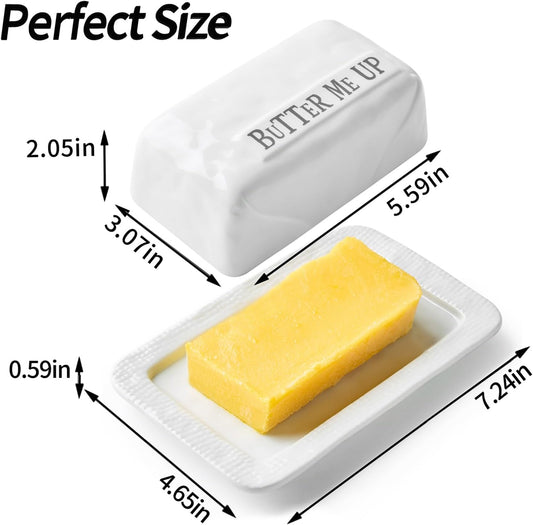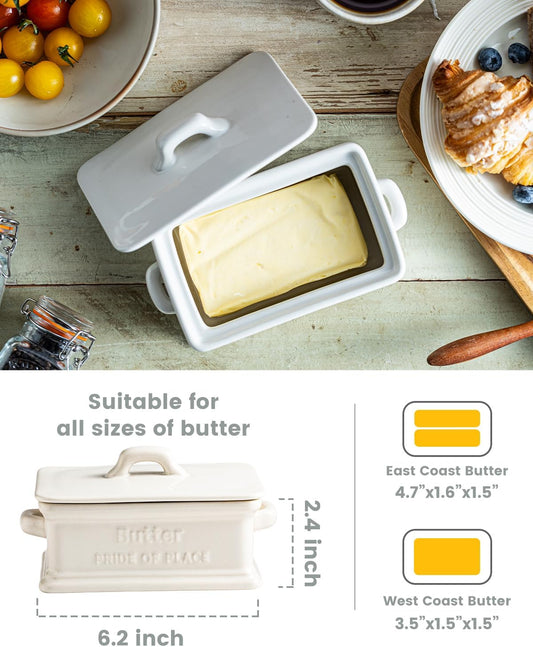 Butter Dish with Lid, Ceramic Butter Dish for Countertop Butter Holder Container Large Butter Keeper for East West Coast Butter, White
