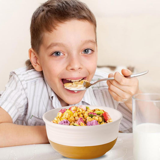 Hasense Ceramic White Colorblocked Design Bowls - 20 OZ Stackable Set of 6, Dishwasher and Microwave Safe for Pasta, Oatmeal, Rice, Ice Cream