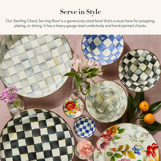 MACKENZIE-CHILDS Enamel Serving Bowl, Enamel Serveware Bowl, 12 Inches, Gray-and-White Sterling Check