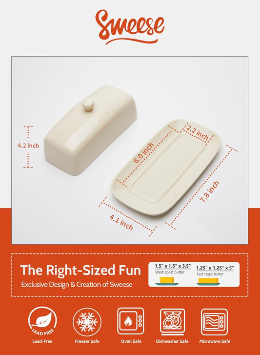 Sweese Butter Dish with Lid, Porcelain Butter Keeper, 7.8 Inch Butter Holder with Handle Cover, Butter Container Perfect for East West Coast Butter, Beige