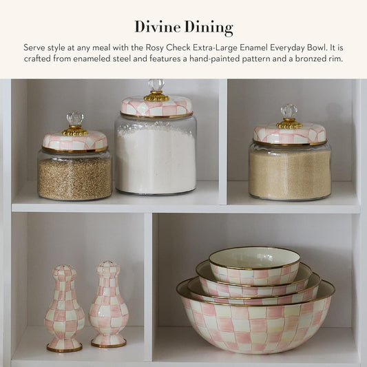 MACKENZIE-CHILDS Enamel Everyday Bowl, Serving Bowl for Entertaining, Extra-Large, Pink-and-White Rosy Check, Set of 1