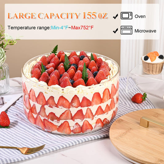 9 inch Large Salad and Trifle Bowl Glass with Lid, 155 oz Versatile Mixing and Serving Dish for Fruit, Laying Ice Cream, Cake, Cupcake, Baking, and Dessert, Microwave Safe