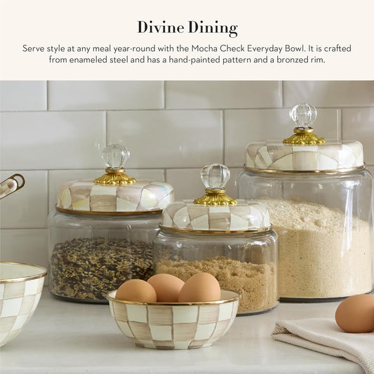 MACKENZIE-CHILDS Enamel Everyday Bowl, Serving Bowl for Entertaining, Small, Brown-and-White Mocha Check