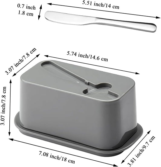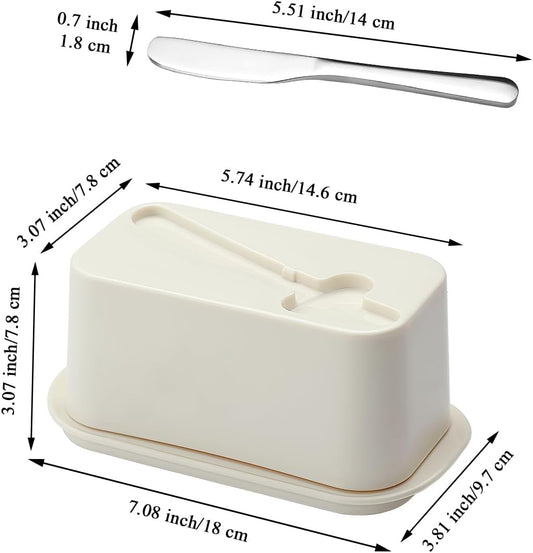 Evanda Butter Dish with Lid for Countertop and Refrigerator Door Shelf with Butter Spreader Knife, Butter Keeper, Plastic Butter Holder Tray Container for West/East Coast Butter