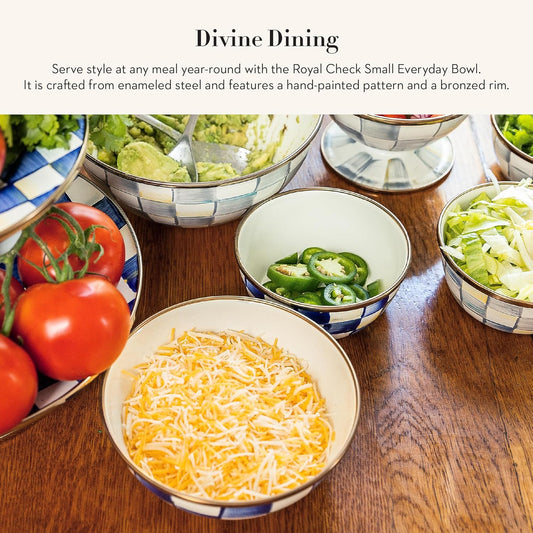 MACKENZIE-CHILDS Enamel Everyday Bowl, Serving Bowl for Entertaining, Extra Small, Blue-and-White Royal Check
