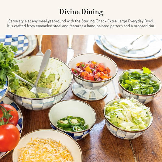 MACKENZIE-CHILDS Enamel Everyday Bowl, Serving Bowl for Entertaining, Extra-Large, Gray-and-White Sterling Check, Set of 1