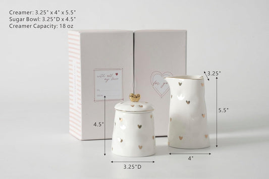 Ceramic Sugar and Creamer Set, 3 Piece with Cream Pitcher, Sugar Bowl with Lid and Spoon,Coffee and Tea Serving Set (White with gold line)