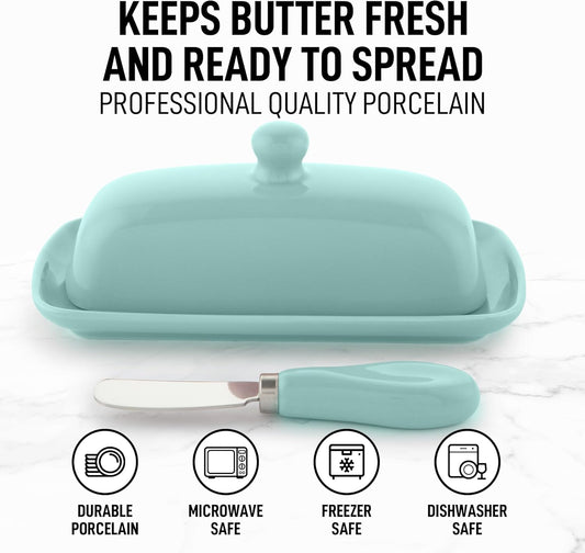 Zulay Butter Dish With Lid For Countertop - Porcelain White, Ceramic Butter Dish with Knob Handle Great for Cooking - Elegant Design Butter Holder - Durable & Sturdy Butter Keeper - Mint