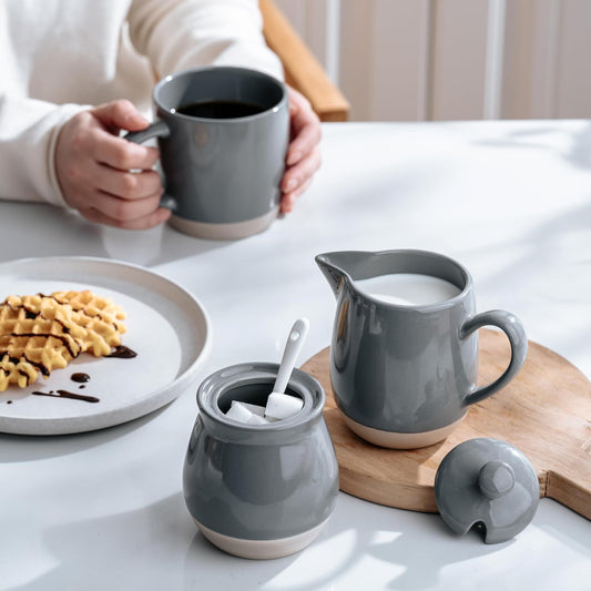 famiware Milkyway Ceramic Sugar and Creamer Set, 10oz Sugar Bowl & 13oz Creamer Set – Stoneware Milk Pitcher & Sugar Dispenser for Coffee Bar, Kitchen, or Countertop, Coffee Serving Set, Light Gray