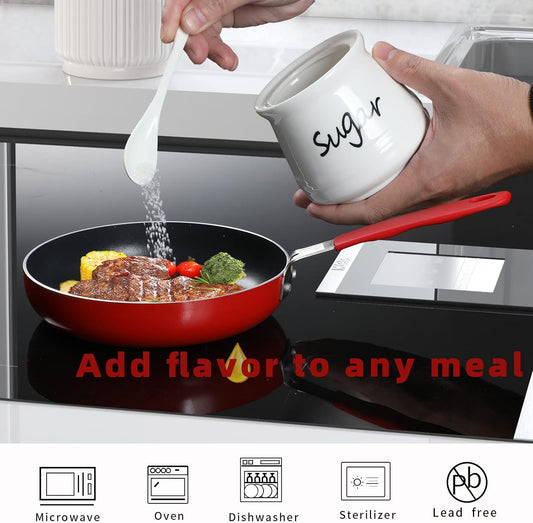 ONTUBE Ceramic Sugar Bowl with Lid and Spoon 12oz (Red)