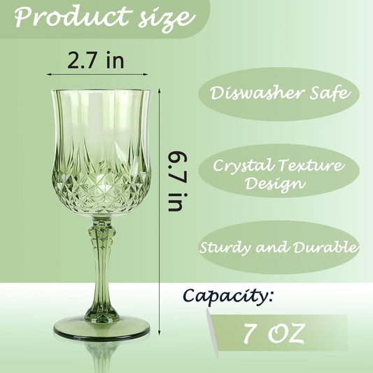 Plastic Wine Glasses,Plastic Goblets Vintage Style Cordial Drinking Glasses for Wedding Reception, Grand Event Party Supplies (24, Green)