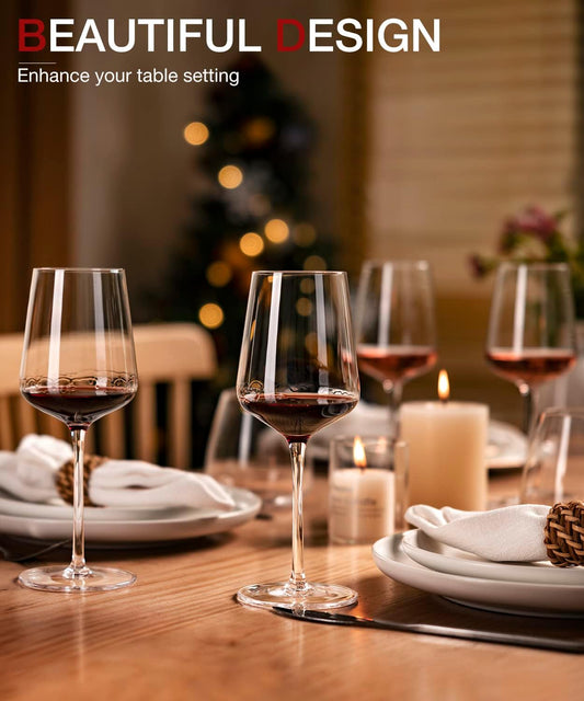 LUNA & MANTHA Red Wine Glasses, Crystal Wine Glasses Set of 4, Hand Blown - Unique Gift for Wedding, Anniversary, Home Bar- 500Ml, Clear