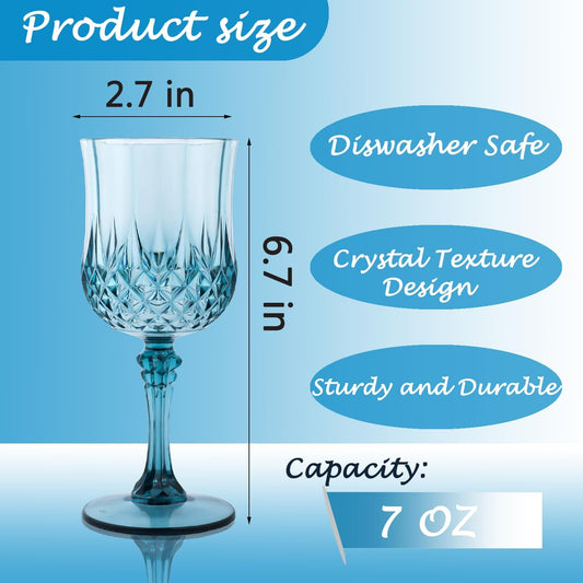 Plastic Wine Glasses,Plastic Goblets Vintage Style Cordial Drinking Glasses for Wedding Reception, Grand Event Party Supplies (24, Blue)