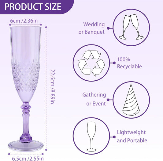 Plastic Champagne Flutes, 48PCS Purple Wine Glasses Goblets Reusable Champagne Flute for Weddings, Bachelor Parties, Toasting, and Events(48,Purple)
