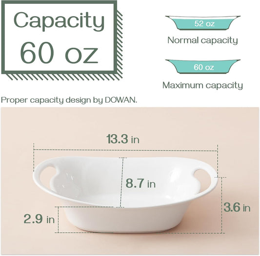 DOWAN Large Serving Bowls with Handles, 60 OZ Oval Serving Platter for Turkey, Fruit Salad Serving Dishes for Entertaining, Porcelain Pasta Bowls for Mother's Day, Parties, Set of 2, Soft White