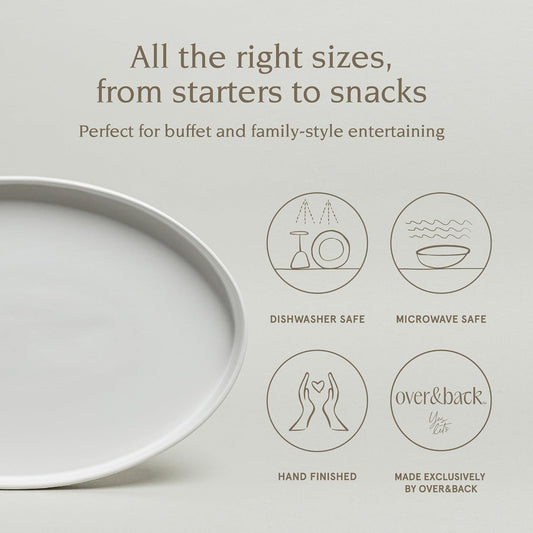 over&back Stackable Stoneware Serving Platter - Elegant 1-Piece Oval Serving Platter to Complete Your Kitchen Set - Perfect for Appetizers, Desserts, and More - 16" L x 11" W - Semi-Matte White