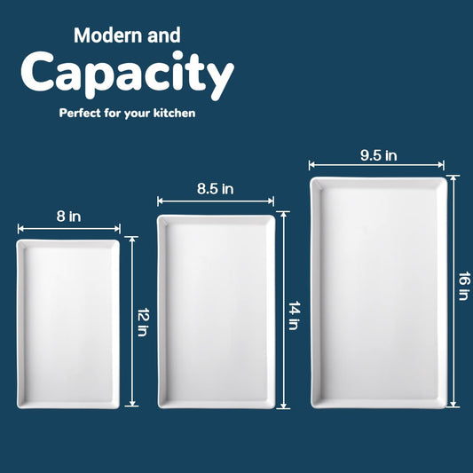 Delling Large Serving Platter, 16/14/12 Inch Rectangular Serving Trays for Serving Food, Serving Tray for Party - Set of 3, White