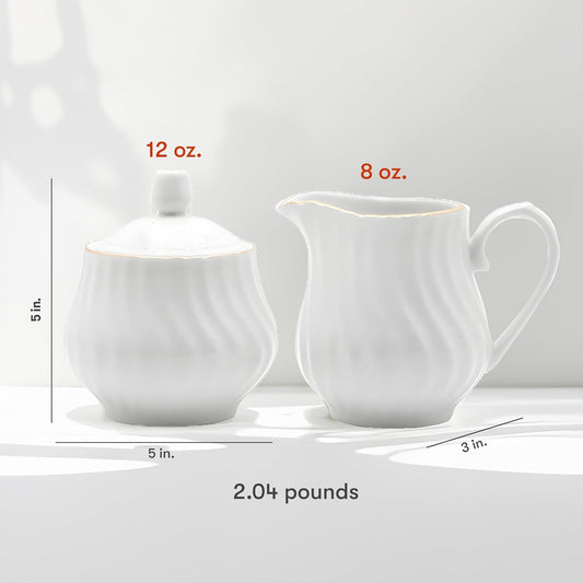 Sugar and Creamer Set - Porcelain Sugar and Creamer Vintage Tea Set with Gold Trims & Embossed Swirls - Exquisite Fine China Tea Set for Parties & Celebrations - Imperial Gold Set by Lynns