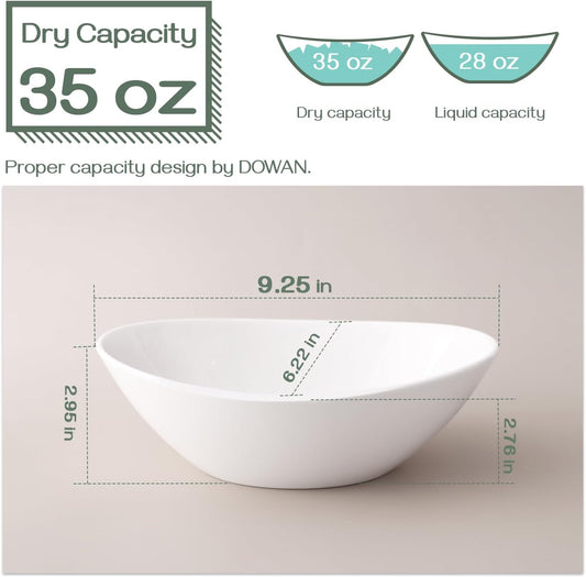 DOWAN 9.25" Serving Bowls, Large Oval Serving Dishes for Wedding and Dinner Parties, 35 Oz for Salad, Side Dishes, Pasta, Oval Shape, Microwave & Dishwasher Safe, Set of 4, Soft White