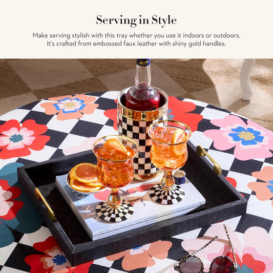 MACKENZIE-CHILDS Black Faux-Leather Tray with Handles, Rectangular Tray for Serving, Large
