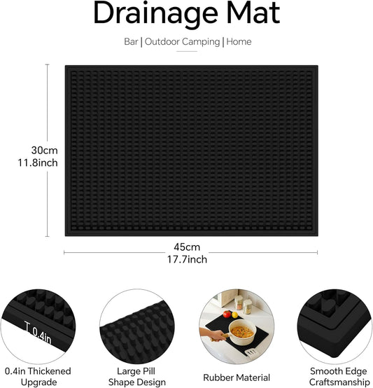 2 Pack Bar Mat, Home Bar Tool Drying Mats, Bar Accessories for The Home Bar Set 18''x12''(Black) for Bars, Outdoor Camping, Bar for Home