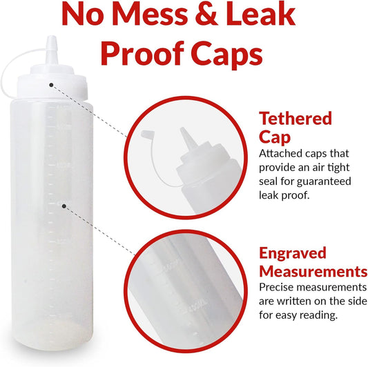 Reli. Plastic Squeeze Bottles, 32 oz. | 4 Pack | Condiment Squeeze Bottles for Sauces | Clear w/Red Twist Cap | 32 Ounce Hot Sauce, Ketchup | Condiments, Olive Oil, Liquids