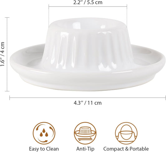 INGOFIN 2 Pcs Ceramic Egg Cups, Soft Boiled Egg Holders Set, Classic Porcelain Stackable, Easy to Clean Tray, Decorative Serving Dish for Breakfast, Easter or Kitchen, White
