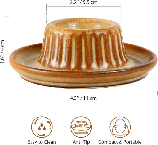 INGOFIN 2 Pcs Ceramic Egg Cups, Soft Boiled Egg Holders Set, Classic Porcelain Stackable, Easy to Clean Tray, Decorative Serving Dish for Breakfast, Easter or Kitchen, Brown