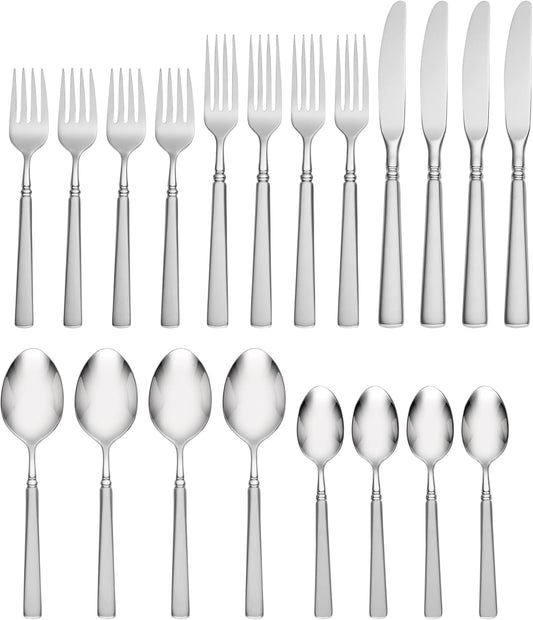 Oneida Lincoln 20 Piece Everyday Flatware, Service for 4, 18/0 Stainless Steel, Silverware Set, Dishwasher Safe, Silver