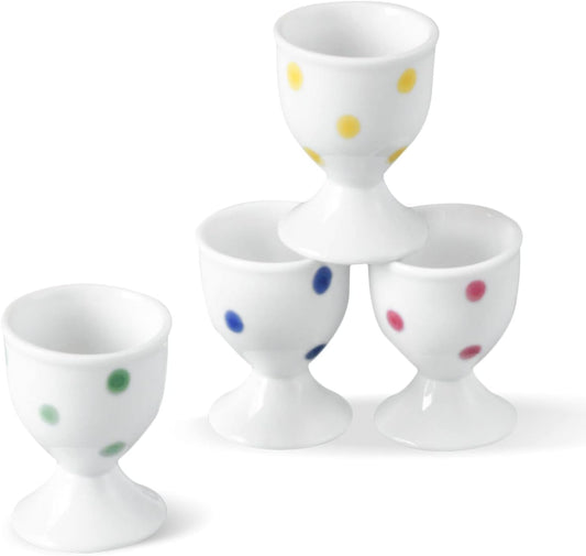 Cinf Ceramic Polka Dots Egg Cup Gift Set of 4 Porcelain Holder Breakfast Boiled Cooking Tools Stable Easy to Clean Childhood Memories Table Decoration Kitchen