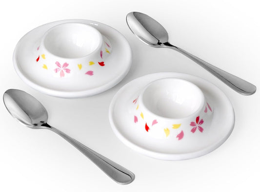 Cinf Ceramic Sakura Egg Holder Set of 4 Porcelain Holder With 4Stainless Steels Egg Spoons Breakfast Boiled Cooking Easy to Clean Childhood Memories Kitchen