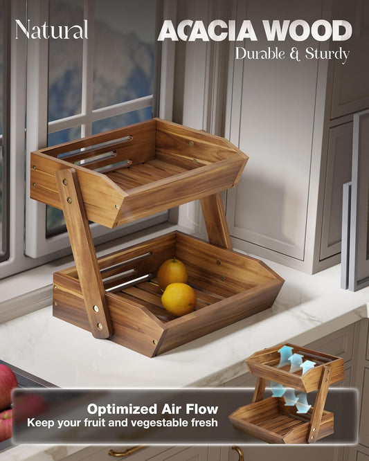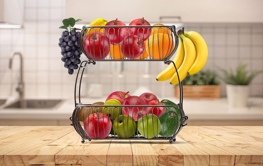 Fruit Basket, Fruit Bowl, 2 Tier Fruit Basket for Kitchen Counter, Produce Stand Storage Holder, Heavy Duty/Multipurpose/Large Capacity for Onion Potato, Vegetables, Spice Jars, Bread Storage
