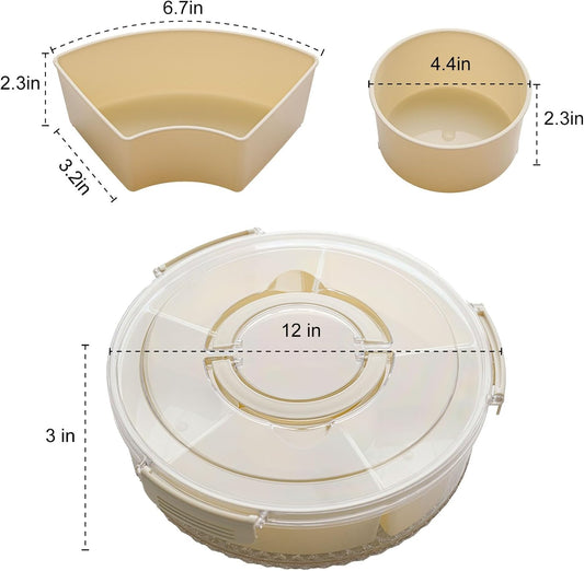 Divided Serving Tray with Lid Rotating Veggie Tray Charcuterie Tray for dinner party, Portable Snack Spinner for Picnic, Travel, Leakproof Serving Platter