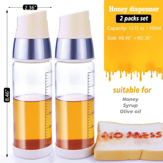 Honey Dispenser No Drip, Maple Syrup Bottle, Olive Oil Dispenser, Honey Jar with Stand, Beautiful Bottle Container, Perfect Honey Pot