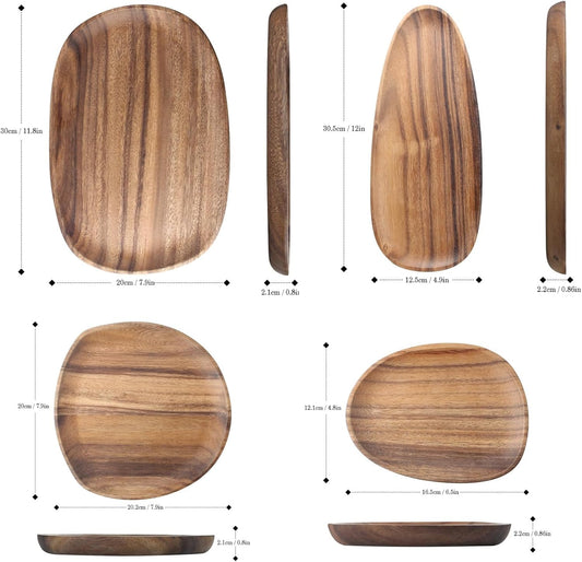 AOOSY Wood Serving Tray, Wooden Serving Platters Set for Serving Food, Fruit, Vegetable, Meat Breakfast Lunch Dinner in Bed Decorative Bread Plates Party Wood Serving Board, Set of 4
