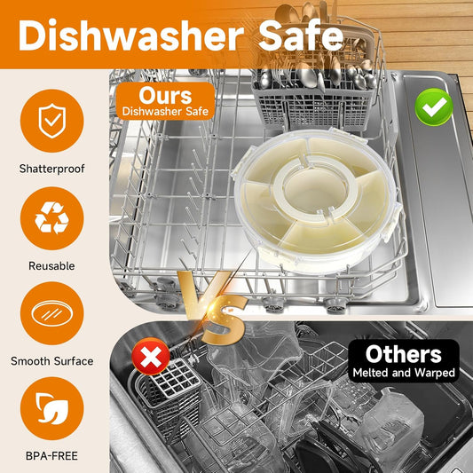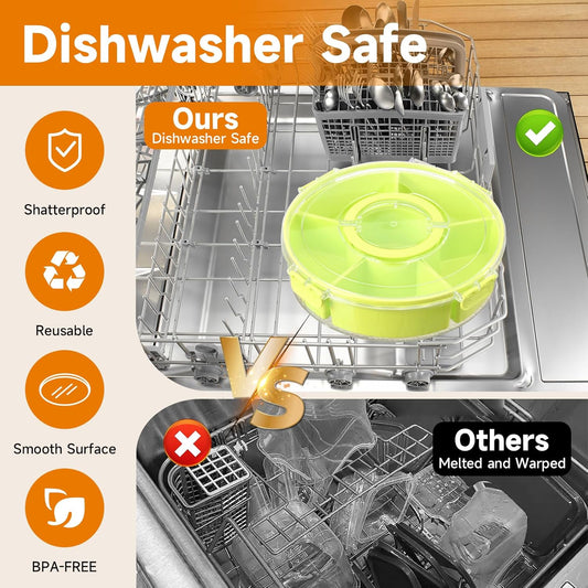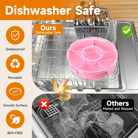 Round Divided Serving Tray with Lid, Rotating Snack Container, Dishwasher Safe Food Organizer for Fruits, Candy, Nuts, Vegetables