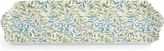 Pimpernel Morris & Co Willow Bough Sandwich Tray - Soft Sage Melamine Serving Tray for Tea Time, Light Snacks, TV Lunches - Easy-Clean Surface & Dishwasher Safe - 15 x 6 Inch, Ideal Housewarming Gift