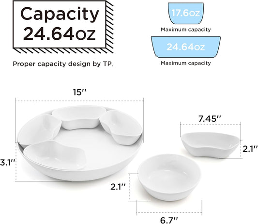 TP Taco Bar Serving Set, Melamine Serving Platter with Lazy Susan, Serving Tray and Bowls, Taco Tuesday Kit Snack Holder for Party and Fiesta, White