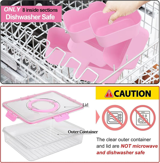 shopwithgreen Divided Serving Tray with Lid and Handle, Portable Snackle Box Charcuterie Container for Party, Veggies, Fruits, Nuts, Candy, Food Tray Platter Snack Box for Entertaining, Picnic, Pink