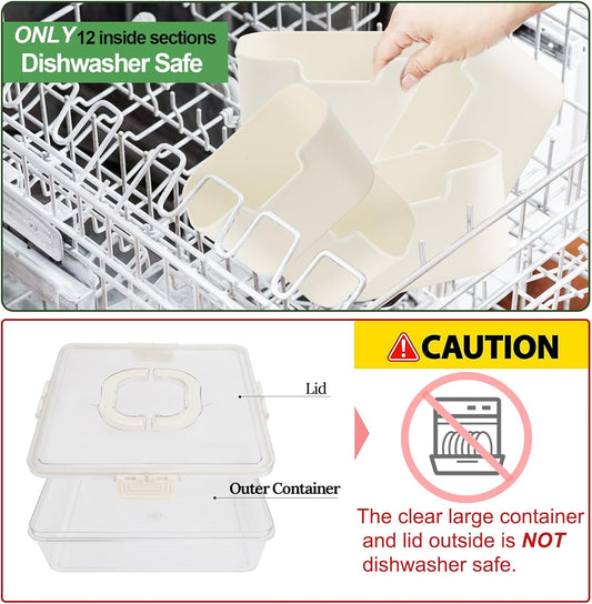 Divided Serving Tray with Lid and Handle, Portable Snack Box, 12 Compartments Veggie Fruit Tray, Charcuterie Platter Snackle Box Container for Party, Snacks, Picnic, LARGER SIZE