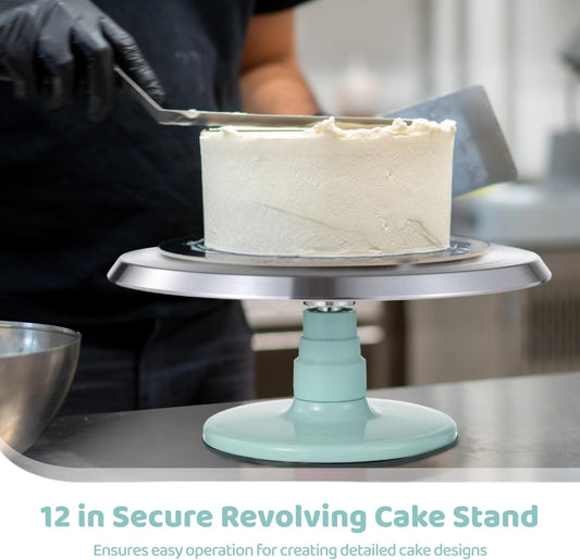 12'' Cake Stand, Cake Spinner Cake Decorating Supplies, Round Decorating Turntable Revolving Aluminum Table Holder Baking Display Tray Plate Tools Accessories for Birthday Wedding Party