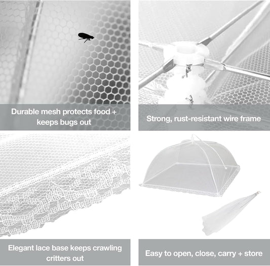 Mesh Food Covers for Outside - Upgraded 6 Pack Large 17x17 in Food Tent Food Cover Outdoors Party Collapsible Picnic Nets Umbrella Mesh Screen Pop Up Food Dome (White)