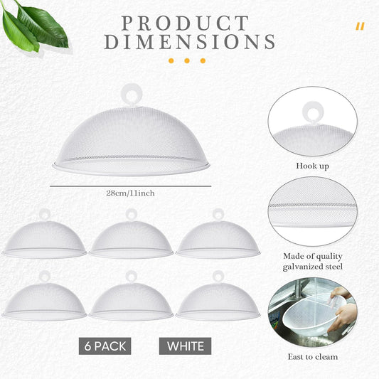 Gerrii 6 Pcs Metal Mesh Food Cover Outdoor Mesh Food Tents Dome Screen Plate Covers for Dinner Plates Reusable Fruit Fly Nets Picnic Food Umbrella for Table, BBQ, Camping, Party (White,11 Inch)