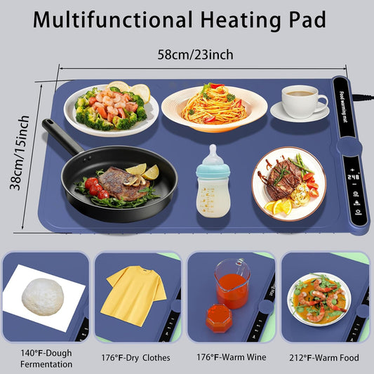 Warming Mat for Food, Rollable Electric Warming Trays for Food with 9 Temperature Settings, Heating Fastly in 10S, Food Warmer Using for Buffets Party and Home Daily, Blue