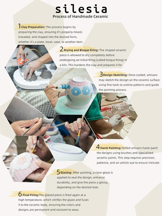 Silesia Handmade Honey Jar with Lid, 10 Ounce Ceramic Hand-Painted Honey Containers with Wooden Dipper, Honey Pot Set for Home and Kitchen in Gift Box, Oven, Dishwasher & Microwave Safe, Jungle Floral