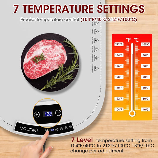 Warming Mat for Food, Food Warming Mat with 7 Temp Master Adjustable Warming Tray, Thermochromic Line, Electric Warming Tray for Buffets Party, Food Warmers
