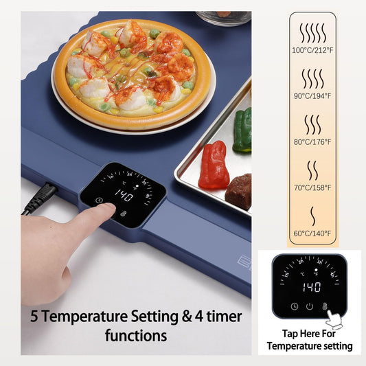 Electric Warming Tray,Food Warming Mat with 5 Temperature Settings,Rollable & Portable Silicone Fast Heating Tray Food Warmer For Parties,Restaurants,Buffet,Sabbat,Home Everyday Use(Blue)