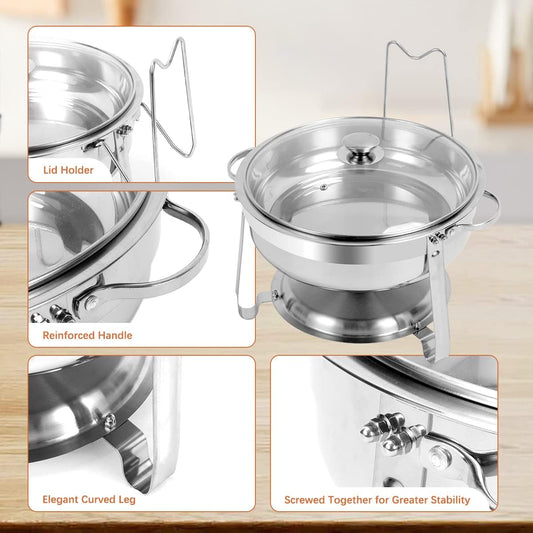 4 Packs 3 QT Round Chafing Dish Buffet Set, Stainless Steel Chafing Dishes with Glass Lid & Holder, Food Warmer for Parties Weddings Banquets Events