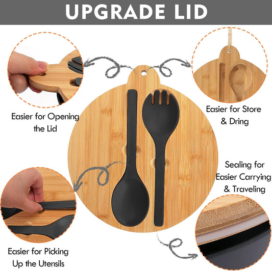 ShineMe Salad Bowl with Lid, 125oz Black Large Salad Mixing Bowl Set with Utensils, Bamboo Fiber Airtight Kitchen Bowl for Storing, & Mixing & Serving & Travelling Indoor & Outdoor
