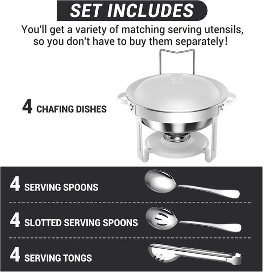 Chafing Dishes for Buffet, 4 Pack 5QT Round Stainless Steel Chafing Dish Set for Home Parties, Christmas Gatherings, Catering Events Complete Buffet Warmer Set (Silver 4)